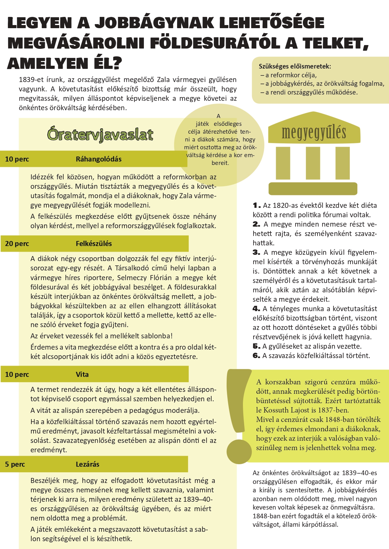 Legyen a jobbágynak lehetősége megvásárolni földesurától a telket, amelyen él?