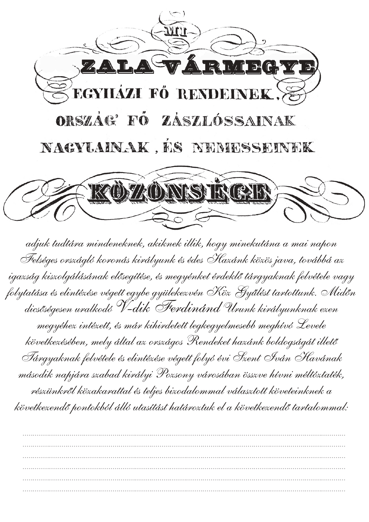 Segédlet Zala vármegye követutasításának elkészítéséhez