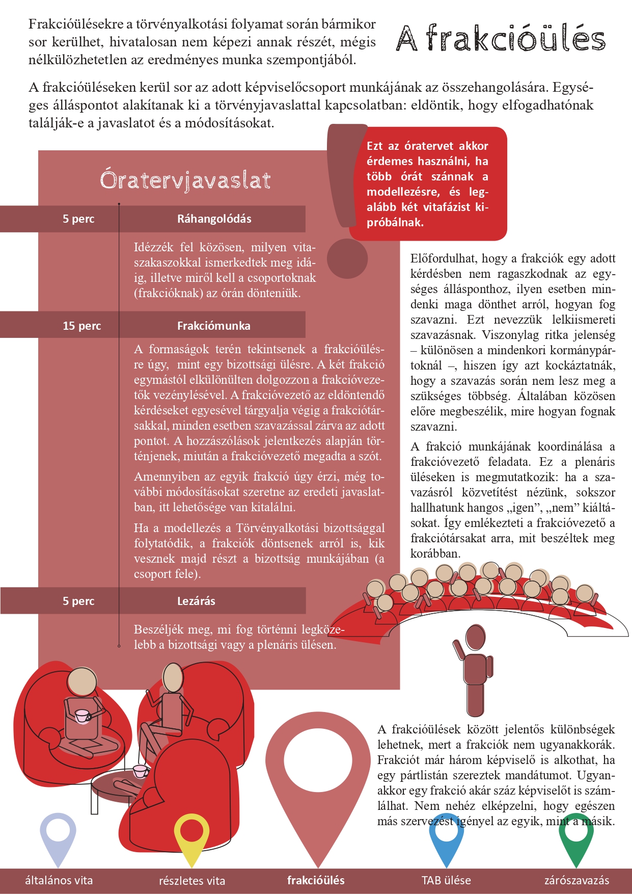 Az alábbi óratervekre kattintva megismerhetők a folyamat adott részeinek jellemzői, feladatai. A forgatókönyvek az ülésvezető elnököknek nyújtanak segítséget.